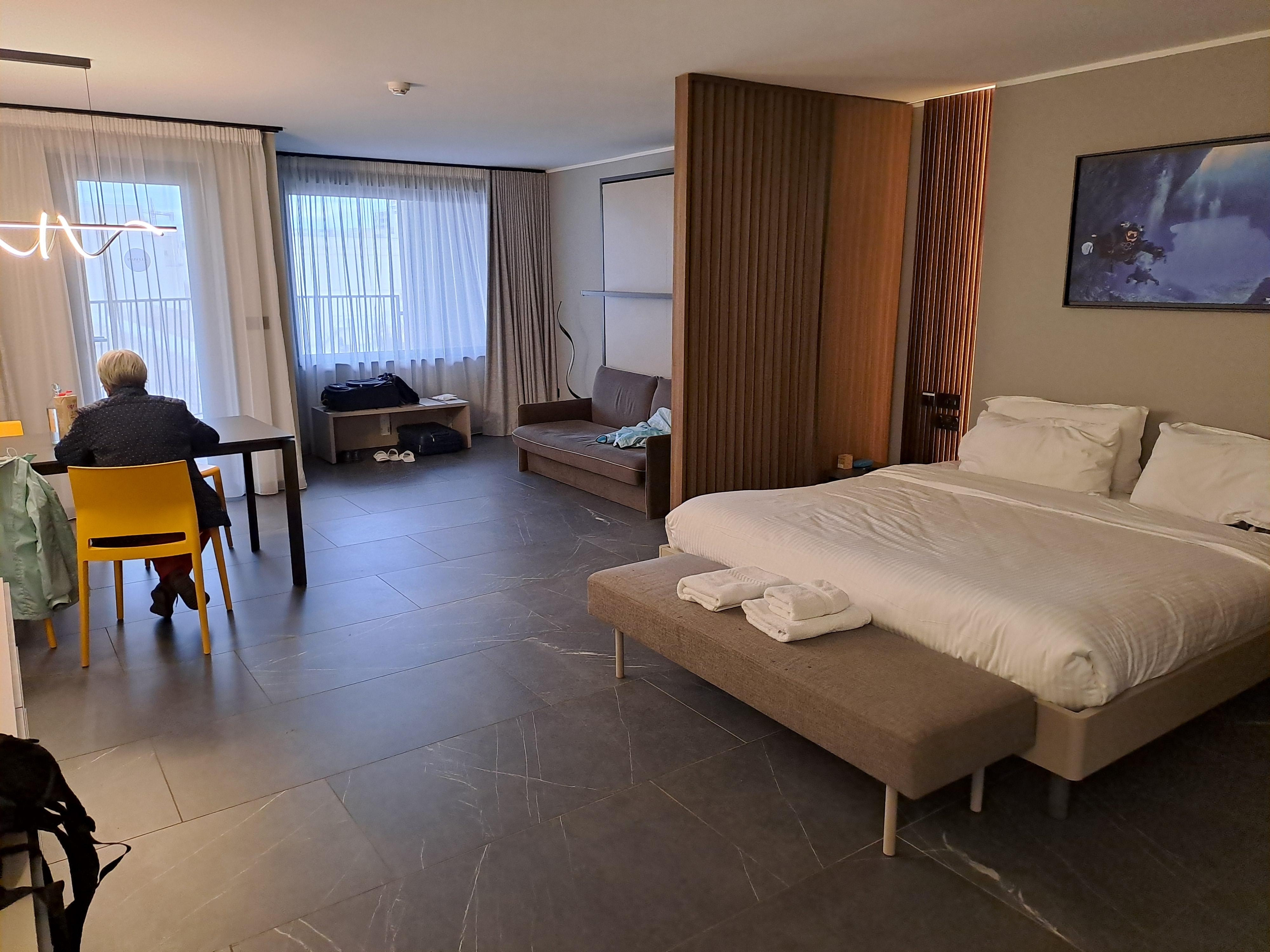 Die Zimmer sind modern eingerichtet, aber meines erachtens unnötig groß, wenn man sie zu zweit nutzt. Sauberkeit war ok, es war schon sehr staubig und im Bad an den Fliesen konnte man gut sehen, dass nicht so gründlich geputzt wird. Aber Bett und Handtücher schienen sauber. Leider gab es nur eine große Bettdecke für zwei Leute - nicht unser Ding und bei der Wärme eher ungeeignet.